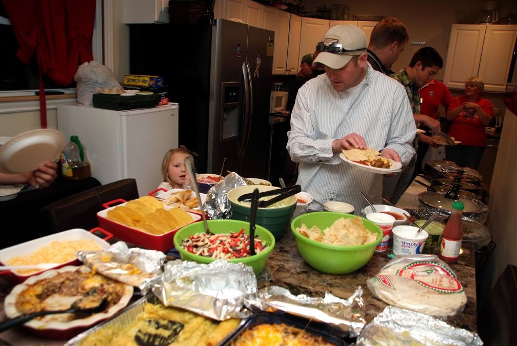 Sgt 1st Class Jeff Lawson, headquarters and headquarters company, 1st Battalion, 22nd Infantry Regiment, 1st Brigade Combat Team, 4th Infantry Division, is served a homemade Mexican-style meal, Jan. 13, inside the Fallen Heroes Family Center. Lawson is one of 50 Soldiers who volunteered as a peer mentor at the 3rd Annual National Military Suicide Survivor Seminar and Good Grief Camp. The seminar and camp was offered by the Tragedy Assistance Program for Survivors in Colorado Springs last fall.