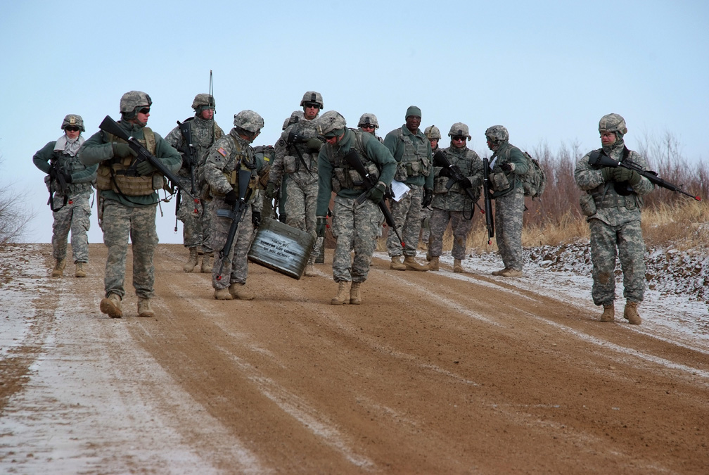 Warrior Leader Course classroom six walk with âhumanitarian aidâ through an icy gorge Jan. 17, as part of a situational exercise. The multicomponent course offered at Fort Carson is organized by the 168th Regiment, Regional Training Institute. During each 15-day course, WLC officials evaluate Soldiers using exams and tasks. As a culminating event, students transition to a tactical environment, where they must treat combat injuries and call for medevac support.