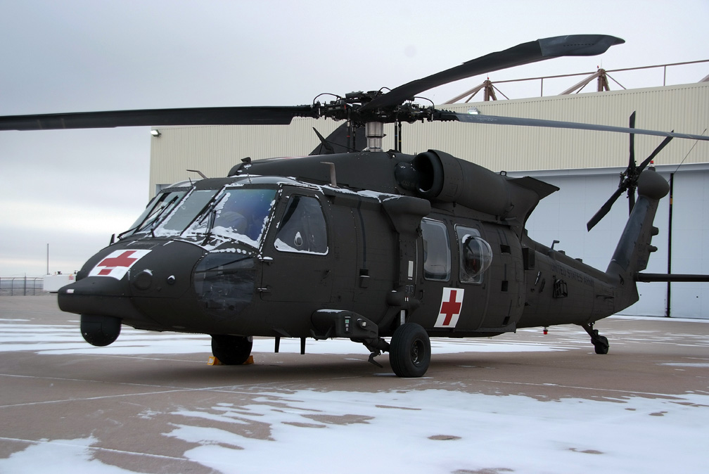 An HH-60M Black Hawk medevac aircraft sits outside a hanger Jan. 17 at Butts Army Airfield. Army Reservists assigned to 7th Battalion, 158 Aviation Regiment, at Fort Carson became the first Army unit to receive the latest Black Hawk medevac aircraft configuration in early 2010. Soldiers from Company F, 7th Bn., 158th Avn. Reg., recently started integrating medevac crews into situational exercises for the Warrior Leader Course at the Mountain Post.