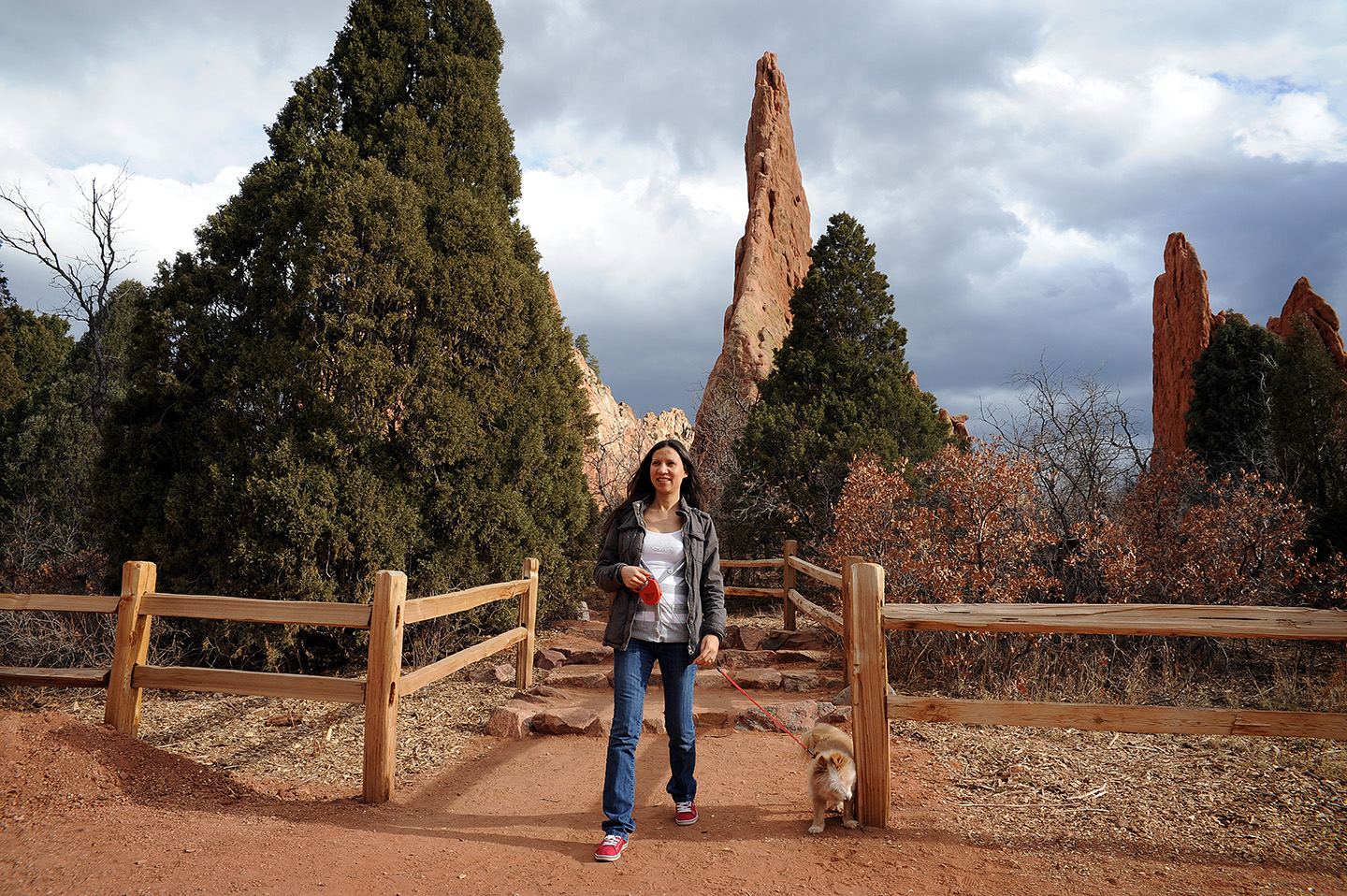 Garden of the Gods 2013/04/03 1440 × 958 Colorado Laila walking Loup on a trail March 29 at Garden of the Gods in Colorado Springs. Laila walking Loup on a trail March 29 at Garden of the Gods in Colorado Springs.